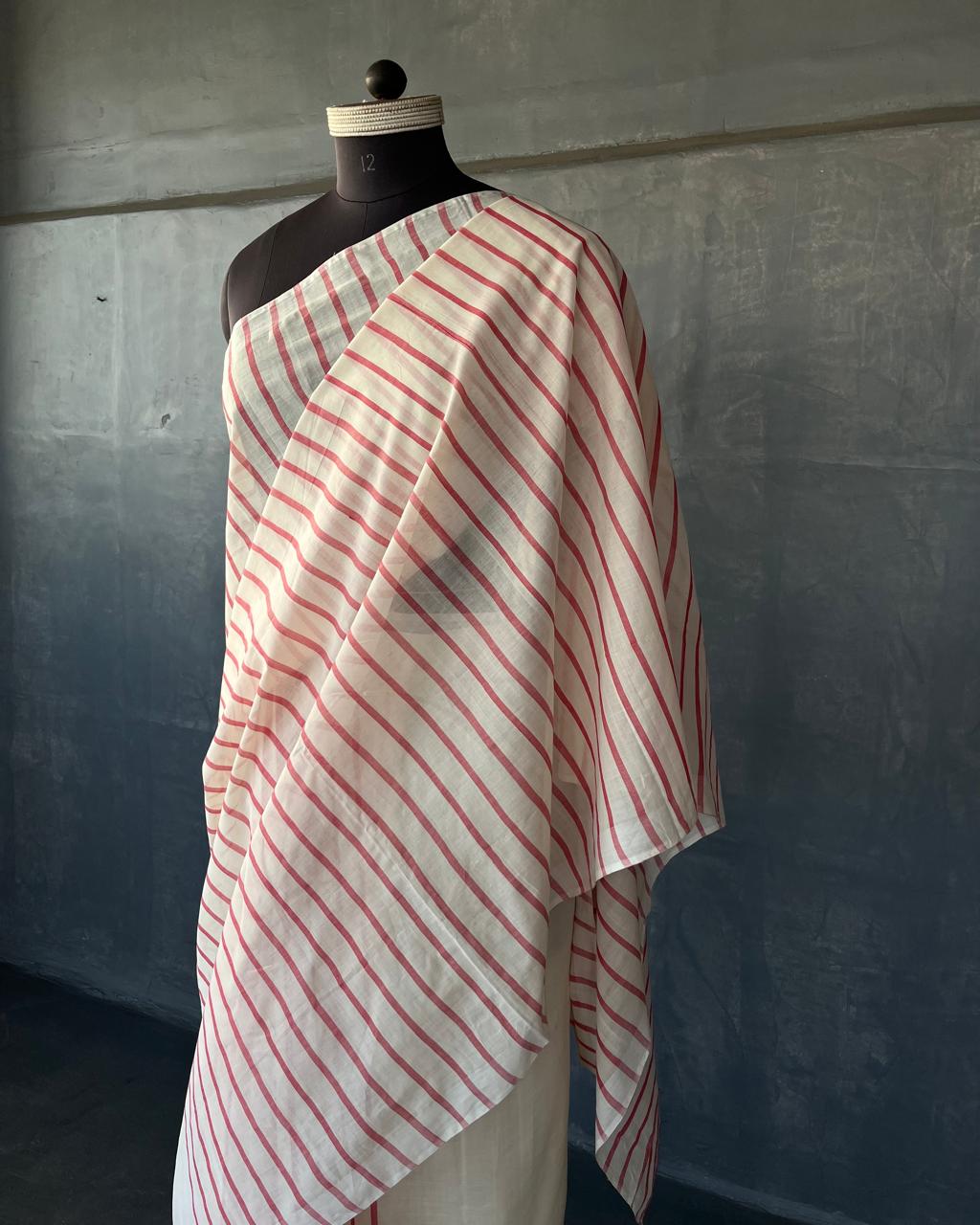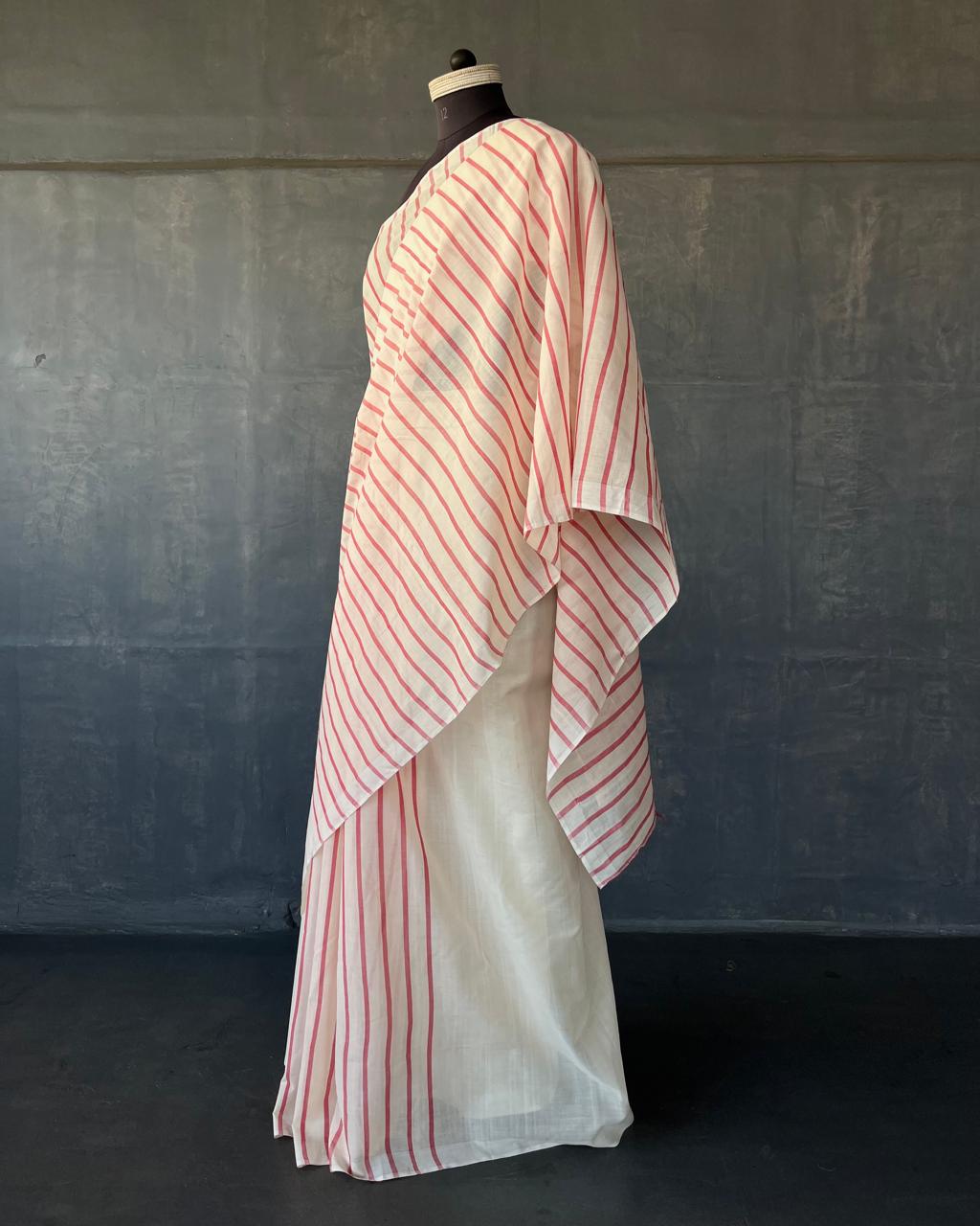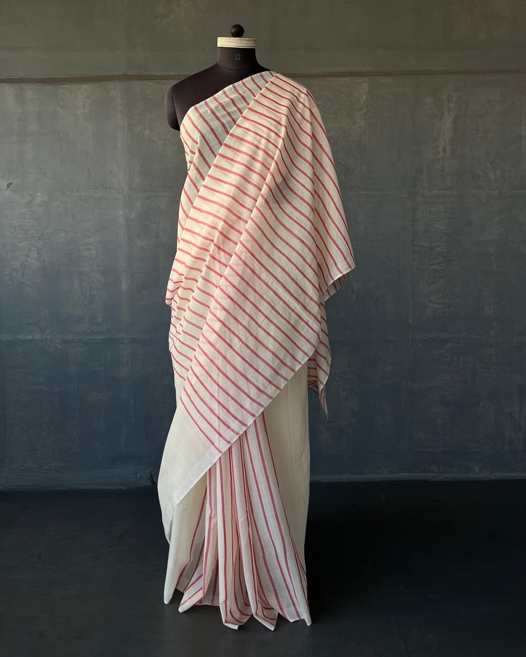 HANDWOVEN COTTON KASAVU SAREE WITH STRIPED BODY.