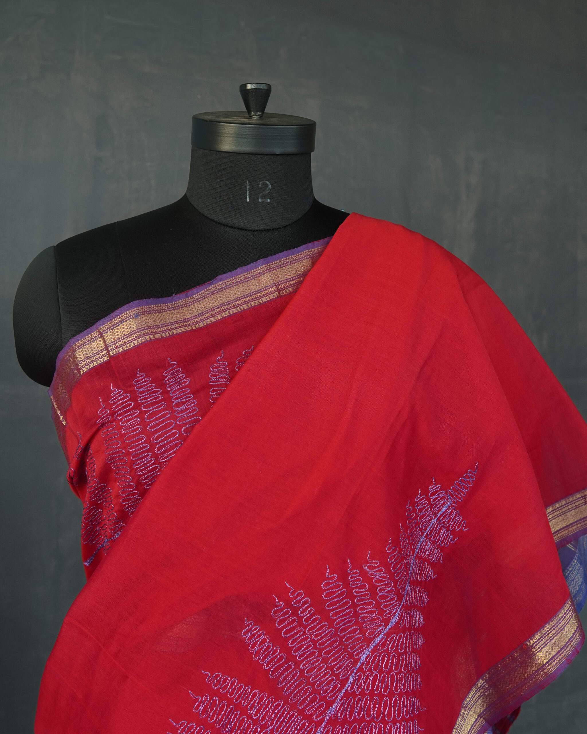 MAHESHWARI  SAREE WITH APPLIQUE AND EMBROIDERY  DETAILS .