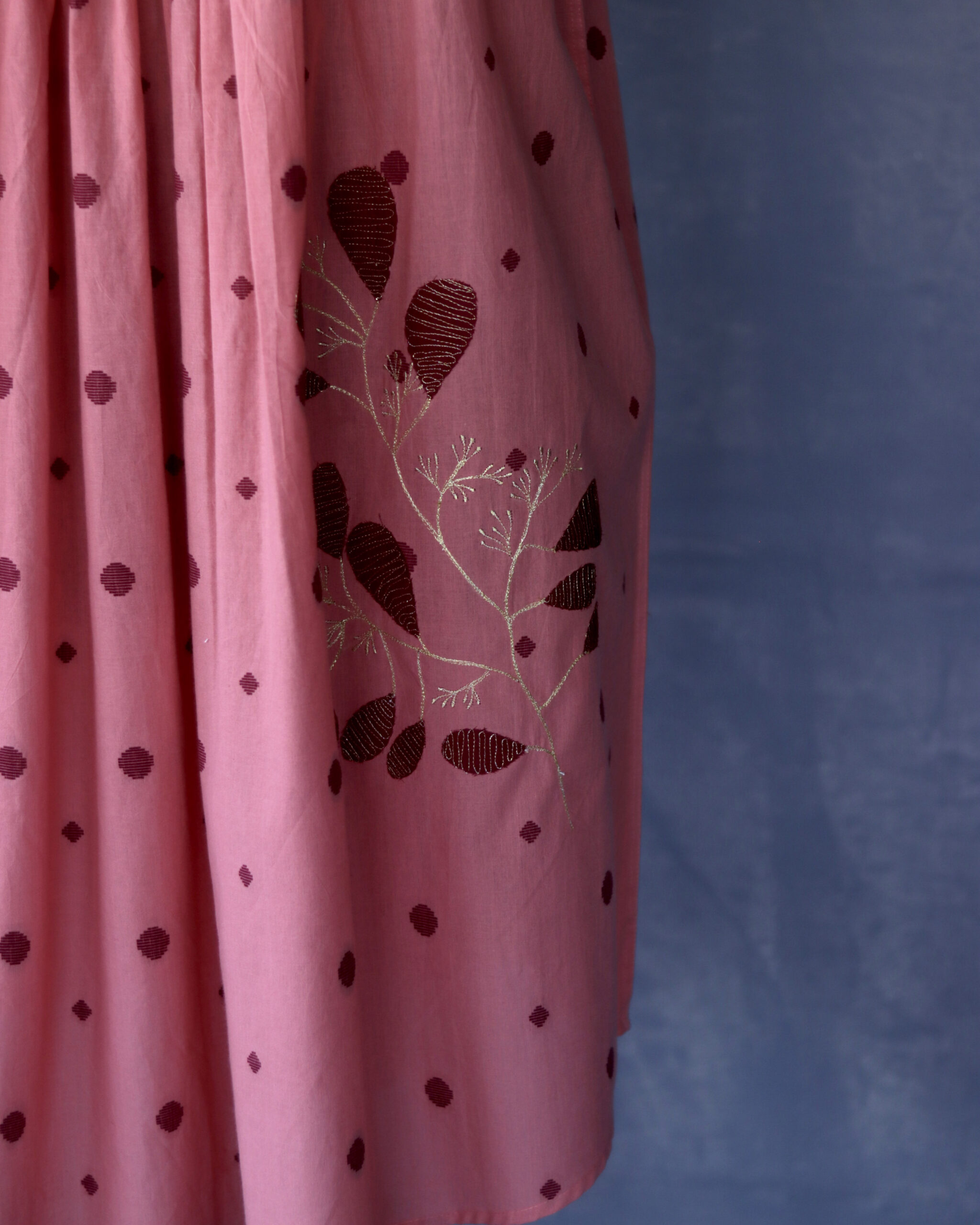 Since this design has multiple pieces of fabric which are appliqued to create this look, to care best for your cloth, we recommend only a dry clean with a reputed drycleaner, soon after use.