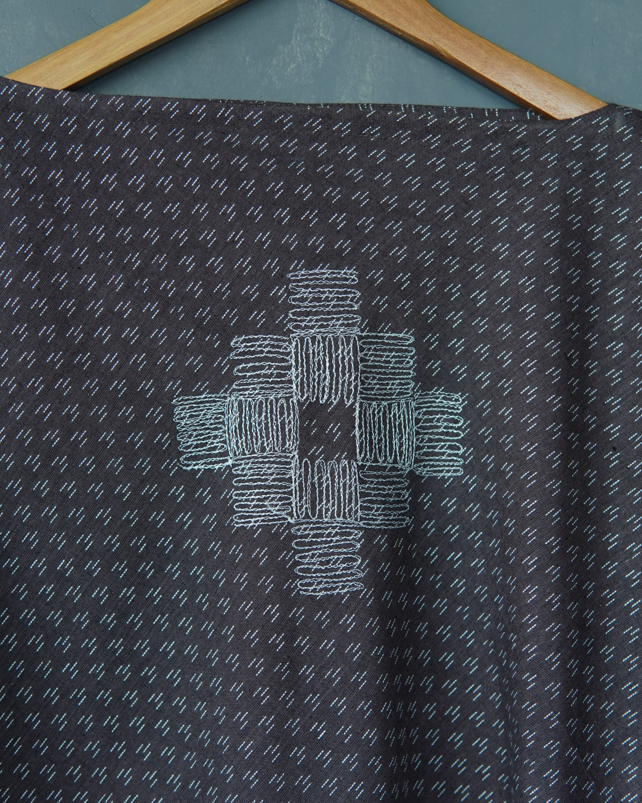 This design is a part of our #everyinchoffabric initiative and unfinished edges are a part of the design sensibility.