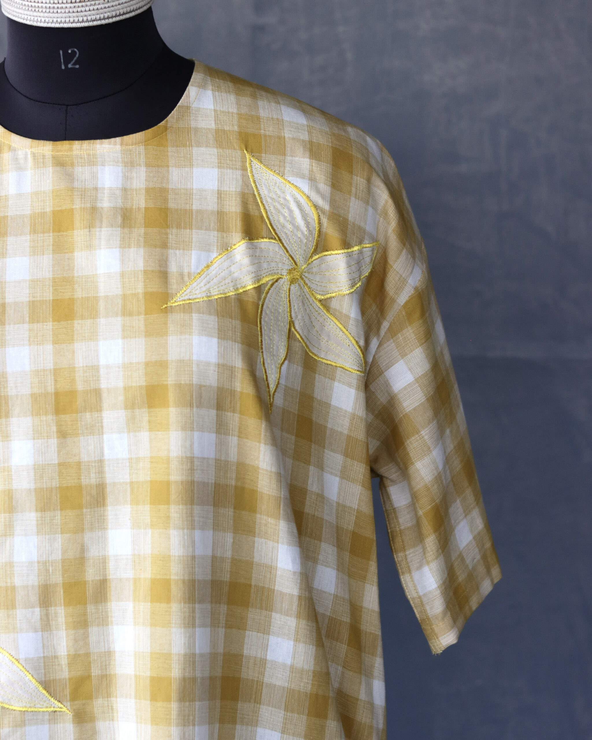 Since this design has multiple pieces of fabric which are appliqued to create this look, to care best for your cloth, we recommend only a dry clean with a reputed drycleaner, soon after use.