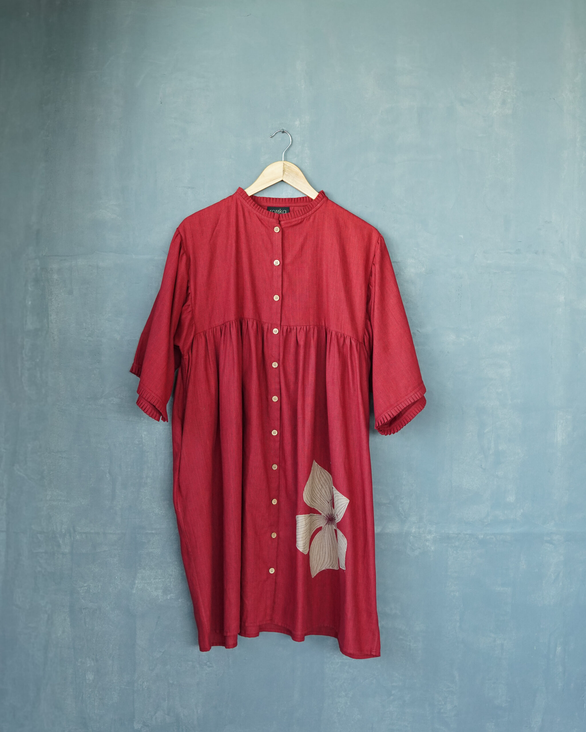Since this design has multiple pieces of fabric which are appliqued to create this look, to care best for your cloth, we recommend only a dry clean with a reputed drycleaner, soon after use.