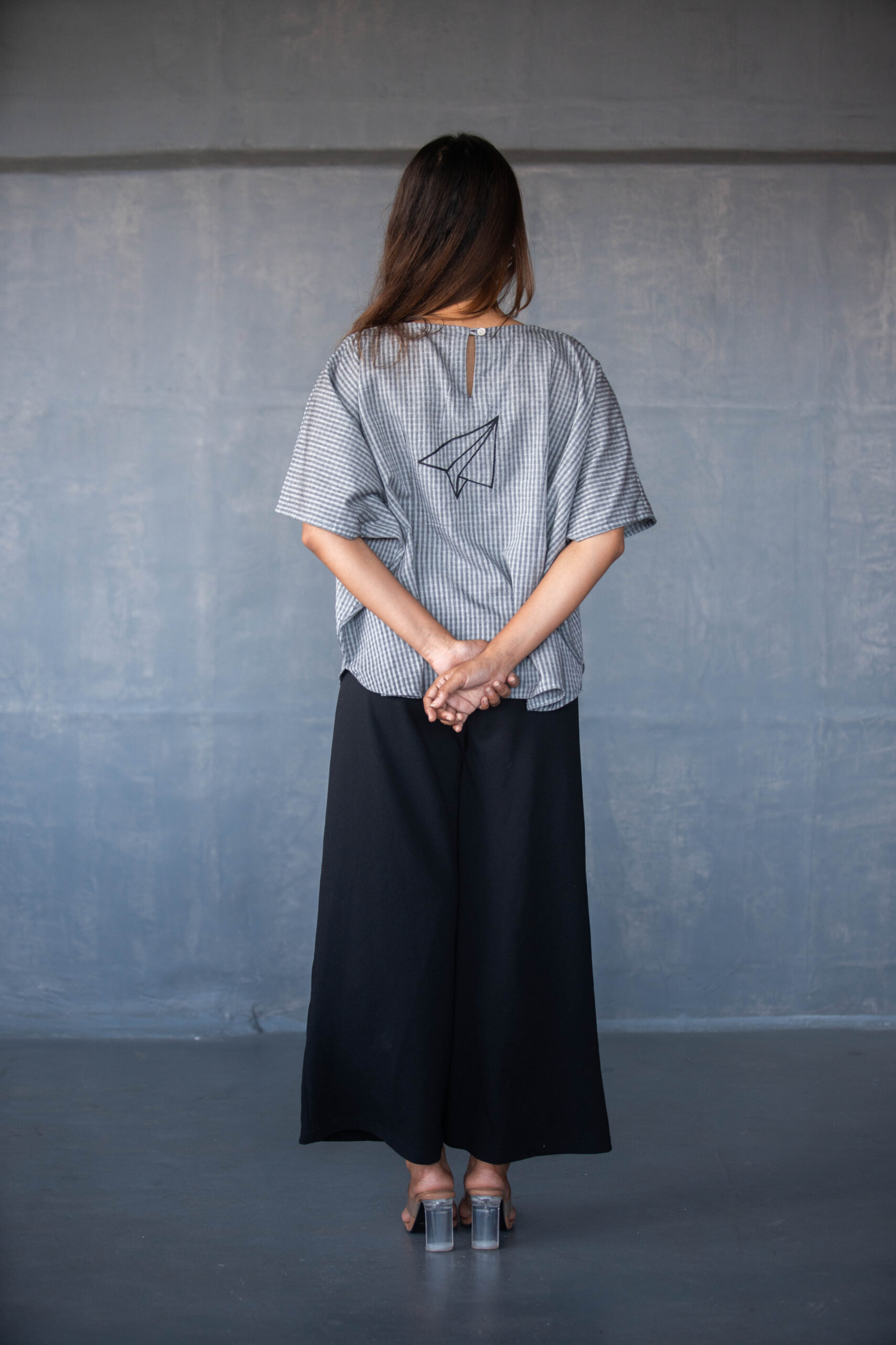 This design is a part of our #everyinchoffabric initiative and unfinished edges are a part of the design sensibility.