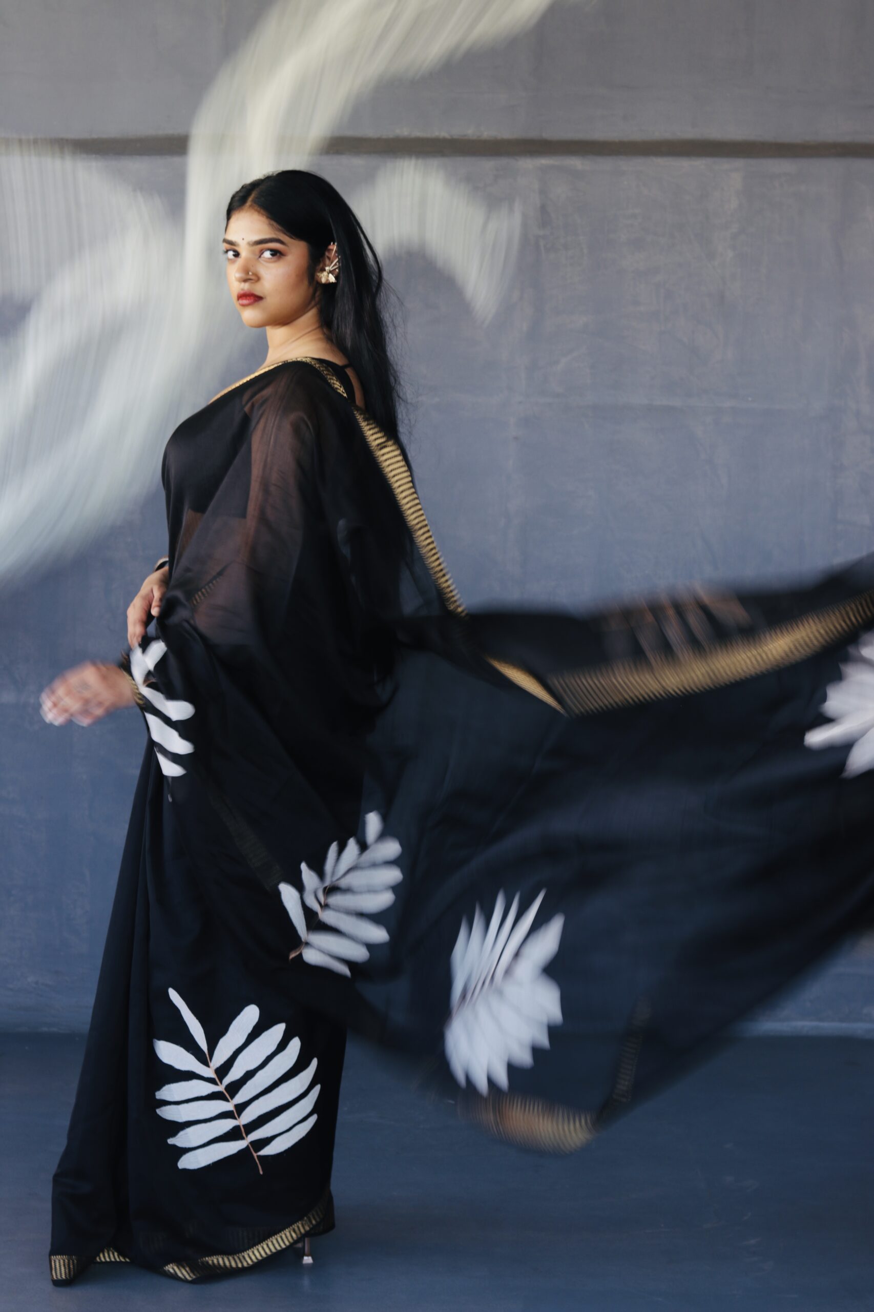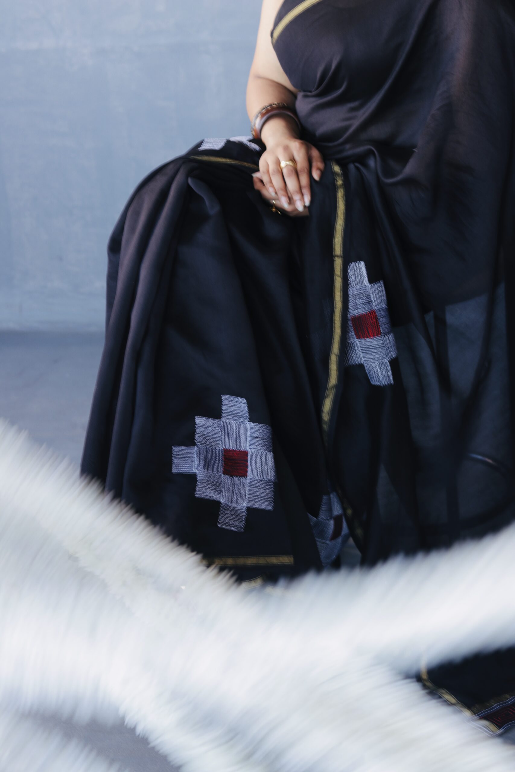 This saree is a part of our #everyinchoffabric initiative and unfinished edges are a part of the design sensibility.